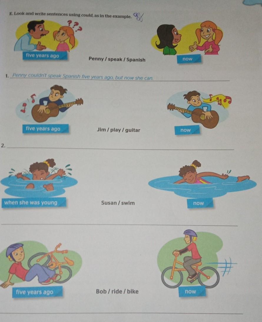 Відповідь: Jim couldn’t play guitar five years ago. But now he can.