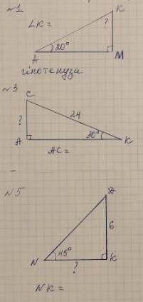 1)∠К=90°-20°=70°, згідно тереми про суму гострих кутів прямокутного трикутника.