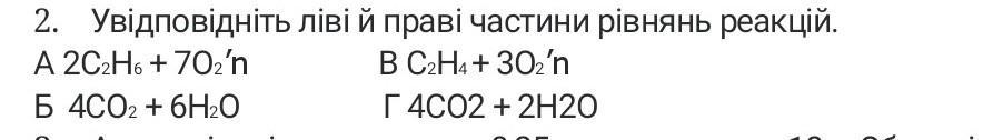 А → Б 2 C₂H₆ + 7 O₂ → 4 CO₂ + 6 H₂O
