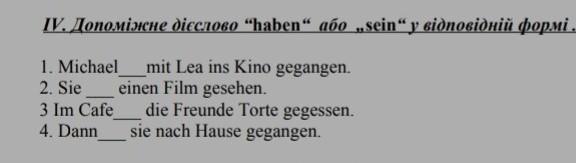 IV. Допоміжне дієслово "haben" або „sein“ у відповідній формі.