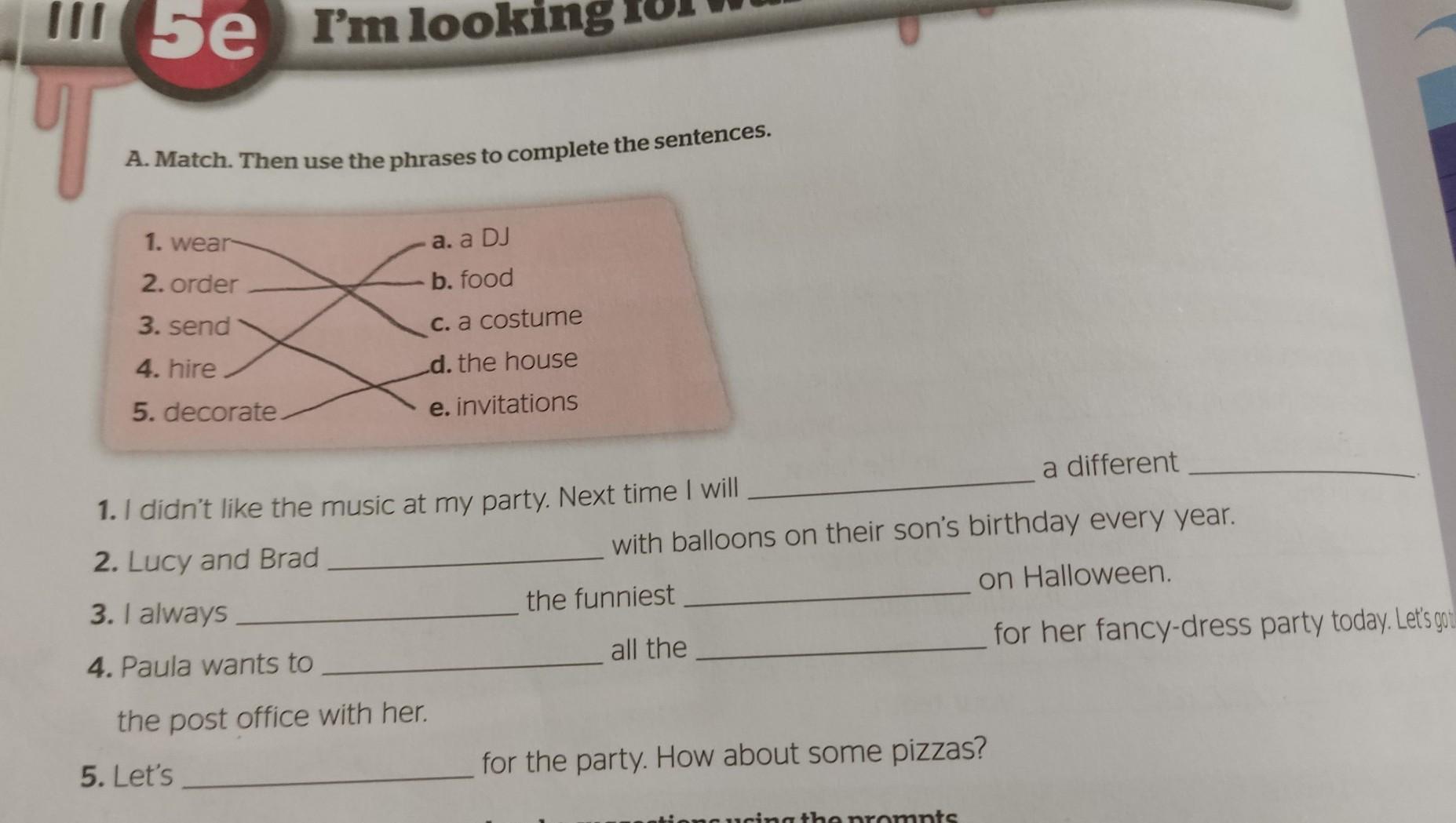 Відповідь:1. hire DJ 2. decorate the house 3. wear a costume 4. send invantions 5. order food