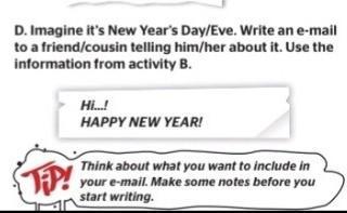 Thank you for your email. I was glad to recive it. You wrote about your plans for New Year. They are unusual. I also want to tell you about mine. New Year`s Day is one of my favorite holiday because it is day of magic. Also all familly spend time together and I love when Santa Clause gives gifts.