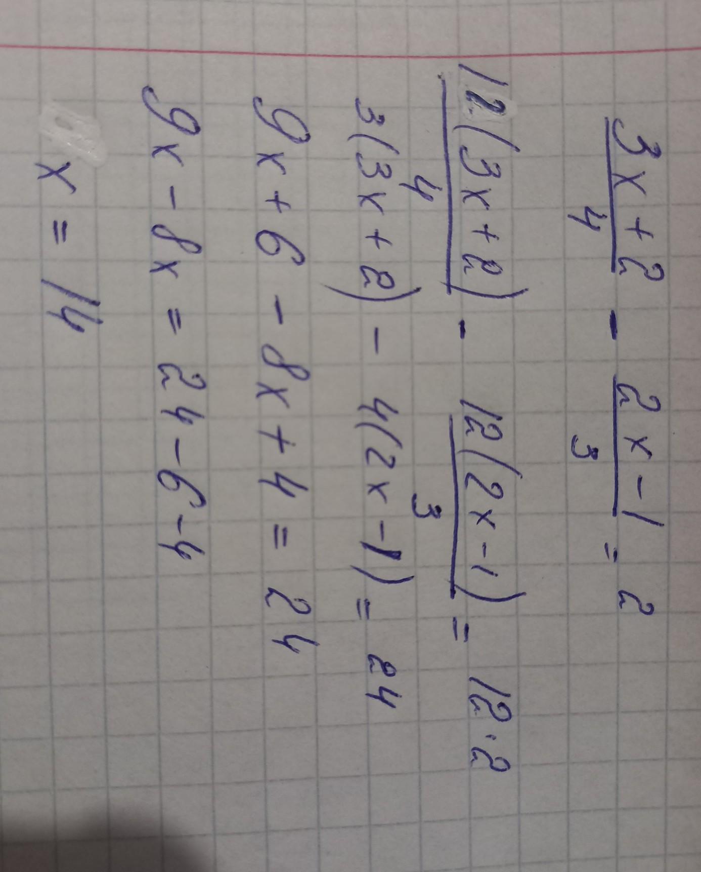 3/4x + 1/2 - 2/3x - 1/3 = 2