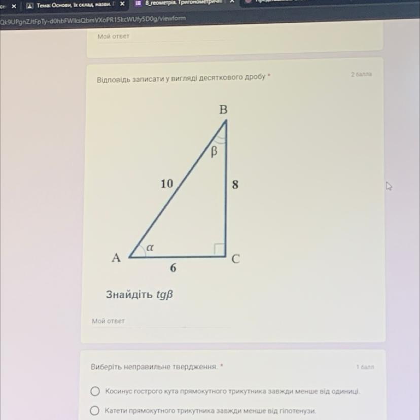 тангенс- відношення протилежного катета до прилелого катета