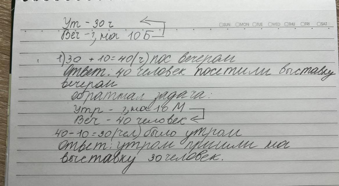 Утром выставку посетили 30 человек . а вечером на 10 человек больше.сколько человек посетил выставку вечером? составь и рише обратную задачу