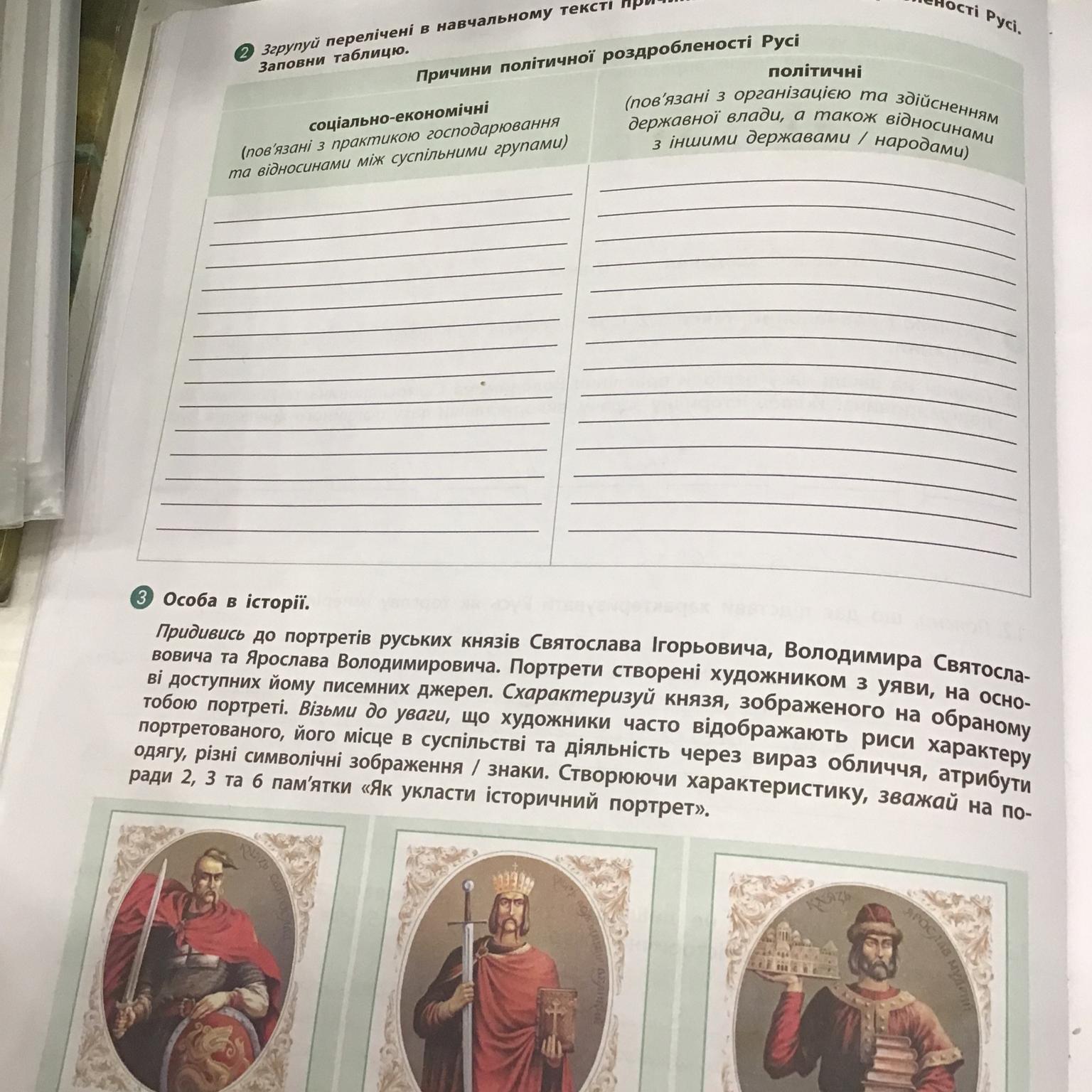Згрупуй перелічені в навчальному тексті причини політичної роздробленості Русі.