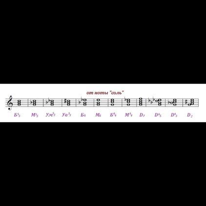 Составить аккордовую последовательность T53, УВ53, М53, УМ53, Б6, Д7, Д65, Д4, Д2.