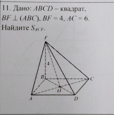 Чтобы найти площадь треугольника SAcF, необходимо знать длины сторон треугольника.треугольник SAcF есть прямоугольный, потому что один из его углов (угол S) = 90°(в силу того, что SF является высотой квадрата ABCD, а угол ASF прямой).За т.Пифагора находим АF:
