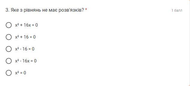 Не має розв'язків 2- ге рівняння х² + 16 = 0 .