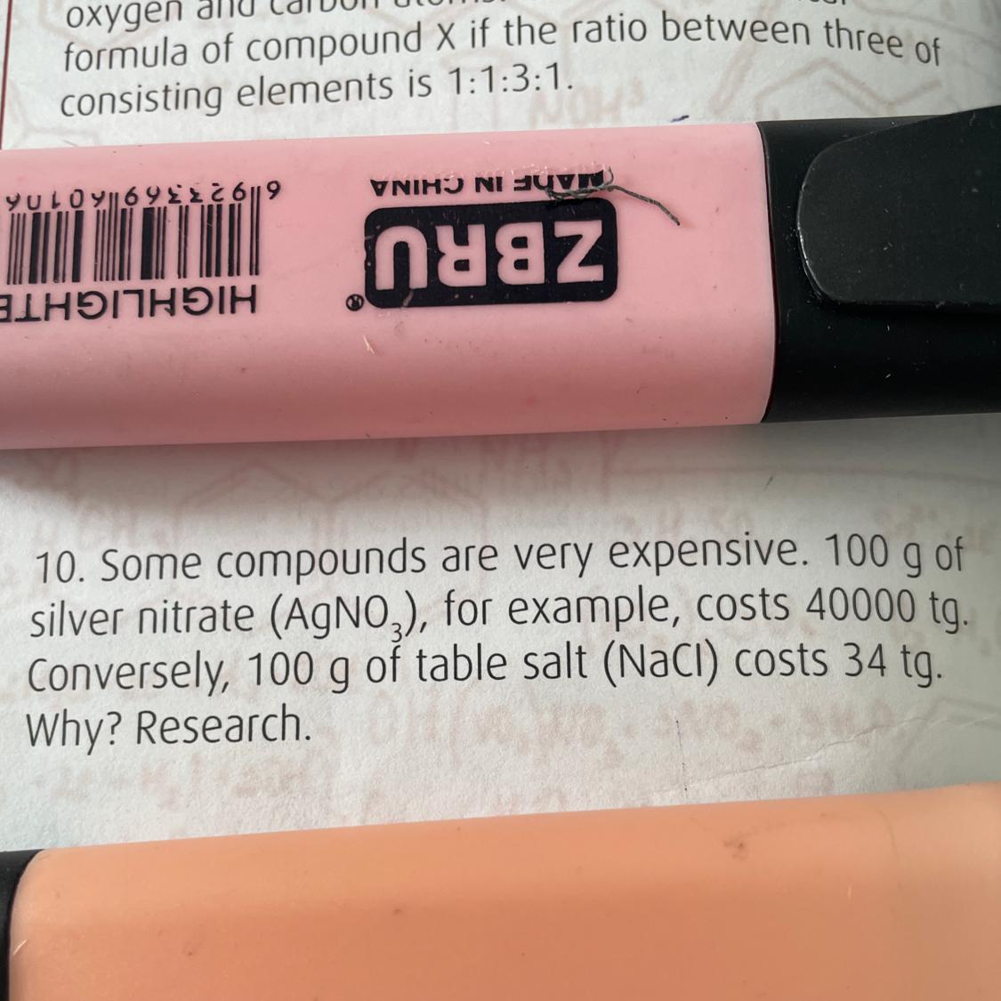 silver nitrate (AgNO3), for example, costs 40000 tg.