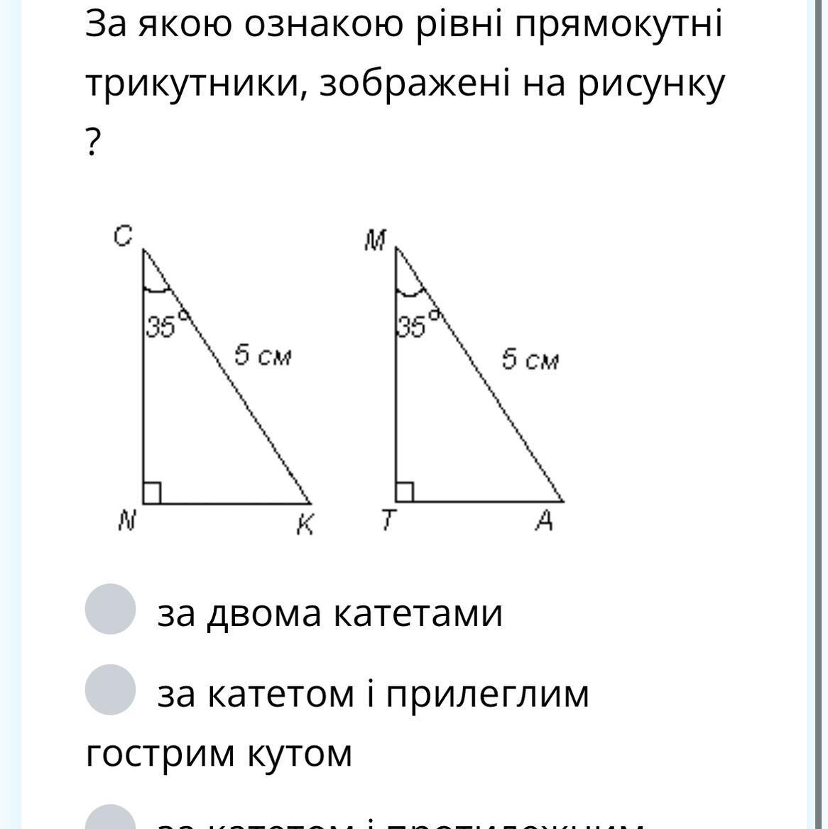 за гіпотенузою та гострим кутом
