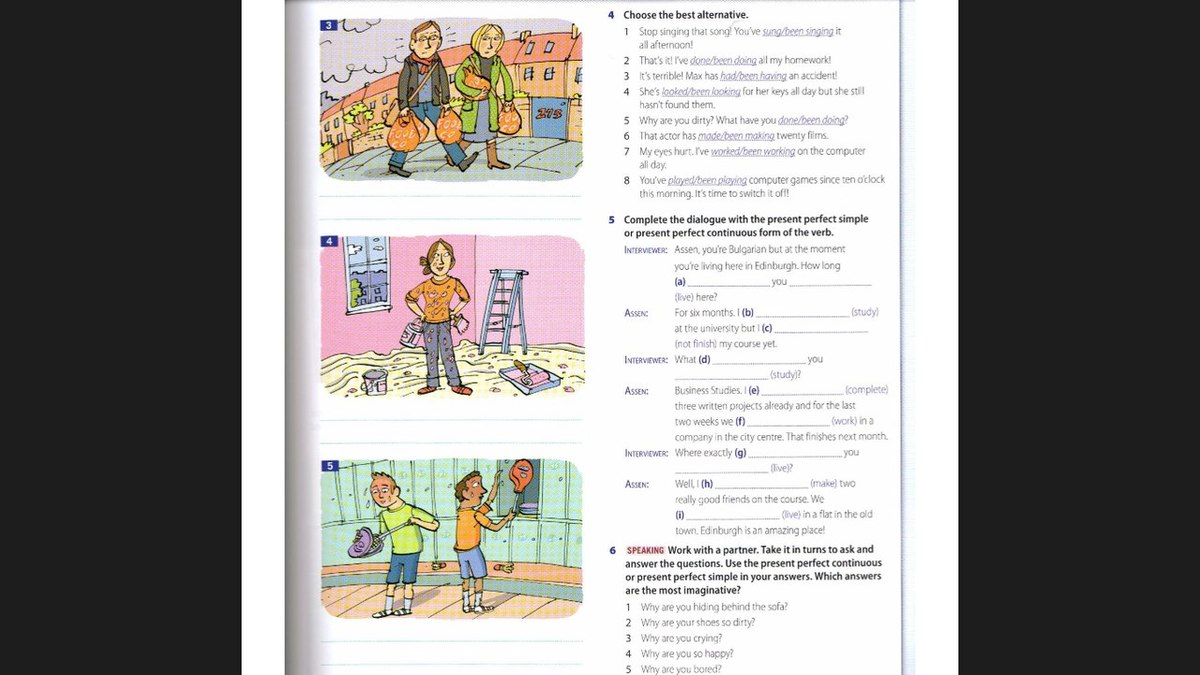 have been studying c) haven’t finished d) are you studying e) have completed f)