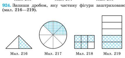 924. Запиши дробом, яку частину фігури заштриховано (мал. 216-219).