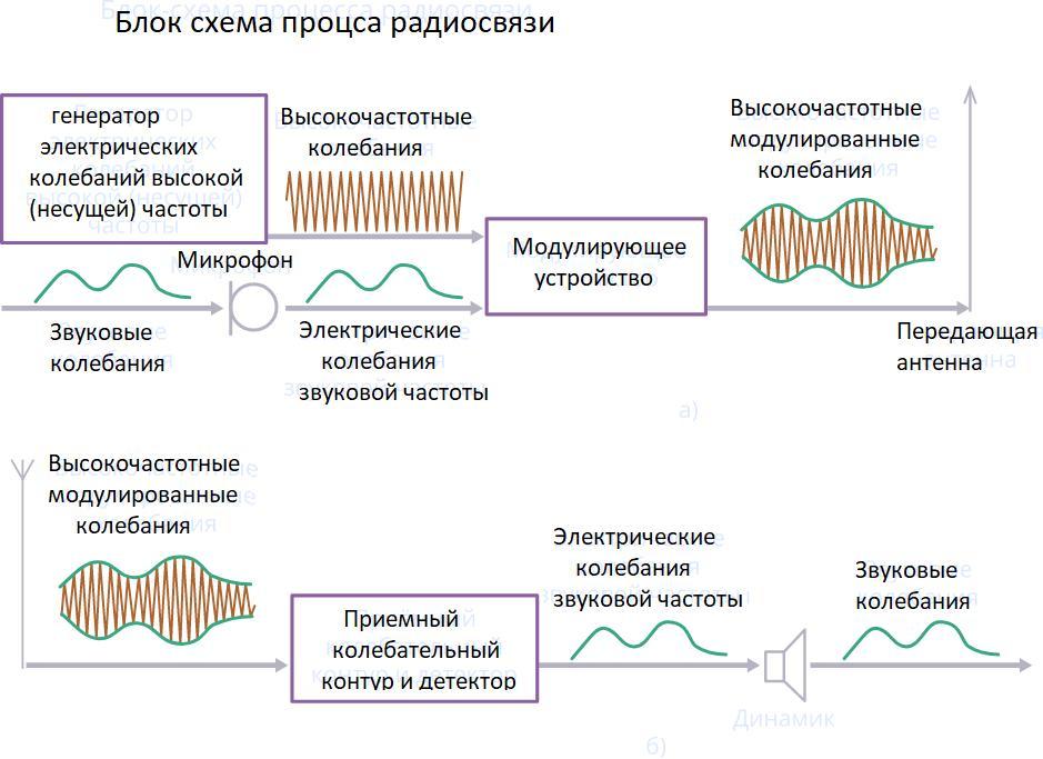 описать осуществление процесса радиосвязи (отразить назначение каждого элемента в схеме))