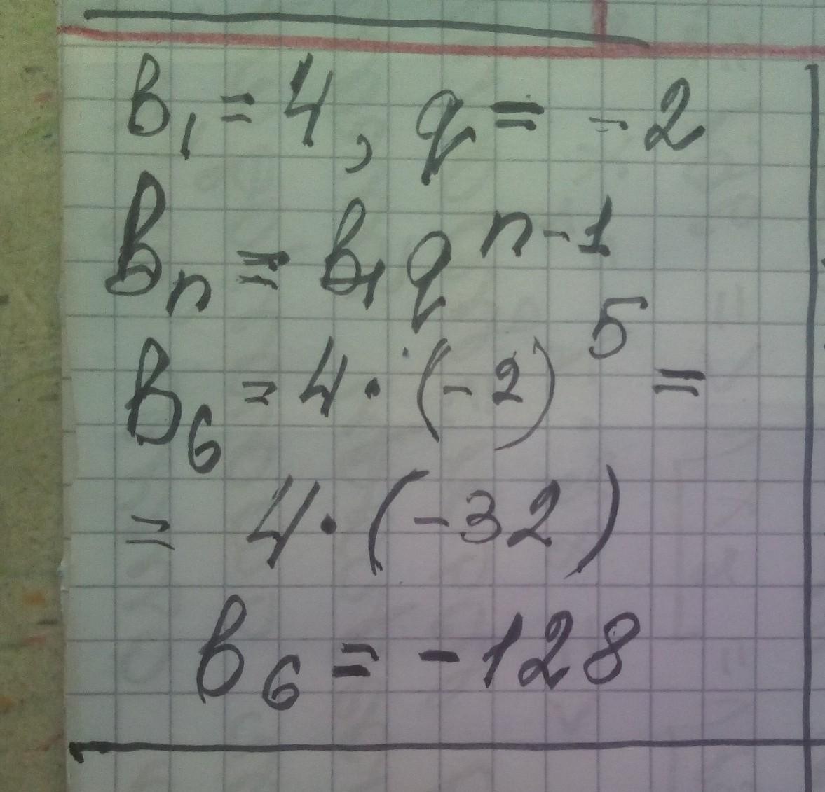 2. Знайдіть шостий член геометричної прогресії (bn), якщо b1=4; q =-2. a) 324; б) 768; B) 324; г) -128