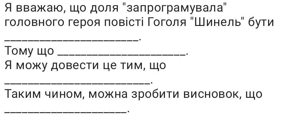 Я вважаю, що доля "запрограмувала" головного героя повісті Гоголя "Шинель" бути.....