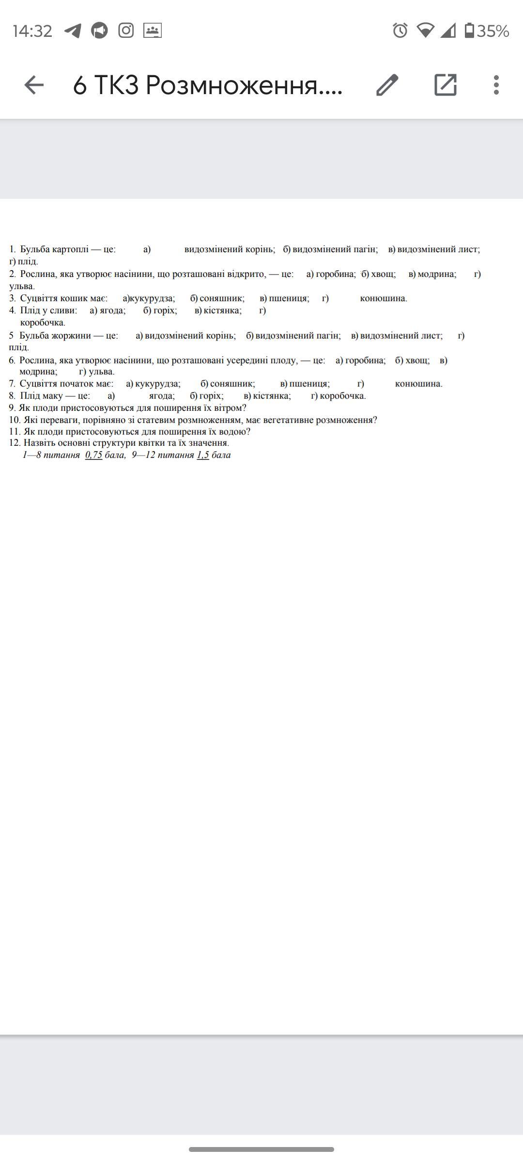 12. квітколоже є верхньою розширеною частиною квітконіжки. Оцвітина є сукупністю видозмінених частин квітки: чашечки та віночка. Вона є покривом квітки, який приваблює комах та водночас захищає