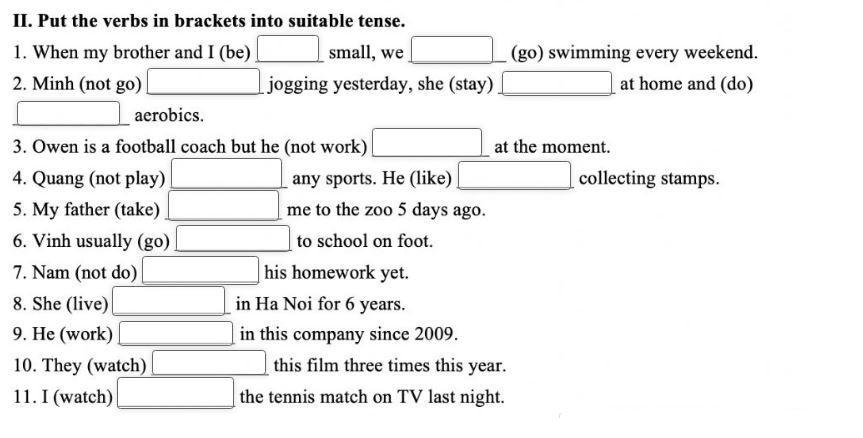 2)Minh didn't go jogging yesterday, she stayed at home and did aerobics.