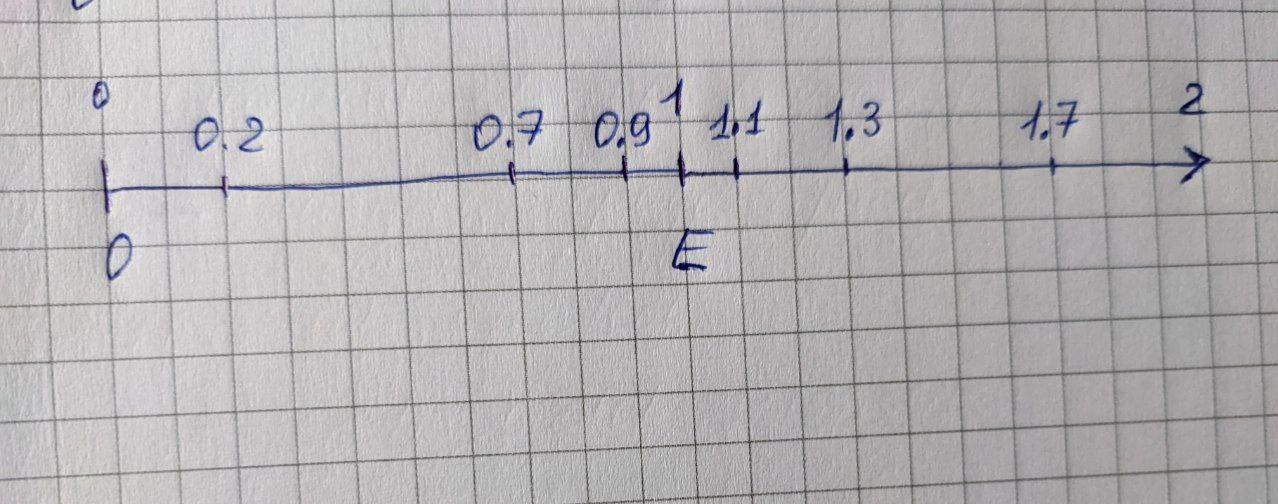 E - точка з координатою 1