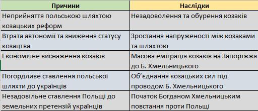 Текст «А» для опрацювання: Визначення причинно-наслідкових зв’язків історичних подій. 1. Аж ось піднявсь страшенний, невгасимий пожар із Запорожжя - піднявсь на ляхів і на всіх недругів отчизни батько Хмельницький. Чого вже не робили тії старости і комісари з городовими козаками, тії косистенти-ротмістри зі своїми жовнірами, да й наші перевертні-недоляшки з надвірною сторожею. Як уже не вмудрялись, щоб погасити теє полом’я! Як уже не перегороджували степові дороги своїми заставами, щоб не пустити нікого з України на Запорожжє, так де ж? Кидає пахар на полі плуг із волами, кидає пивовар казани в броварі, кидають шевці, кравці і ковалі свою роботу, батьки покидають маленьких дітей, сини — немощних батьків і матірок, і всяке манівцем да ночами, степами, тернами да байраками чимчикує на Запорожжє до Хмельницького. І отоді-то вже «розлилась козацька слава по всій Україні...». (П. Куліш)Зробити таблицю Причини-Наслідки