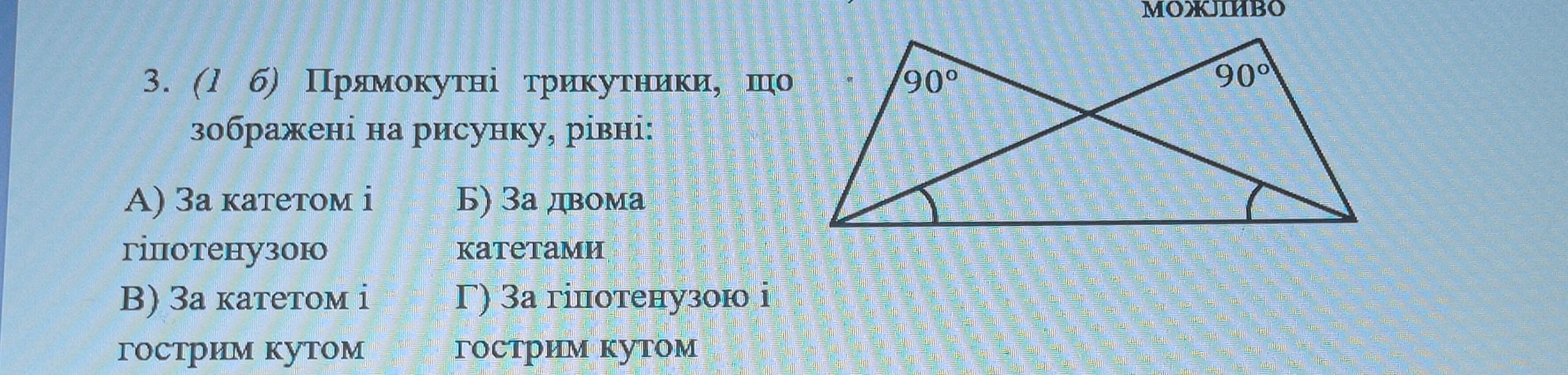 ВІДПОВІДЬ Г за гіпотенузою і кутом