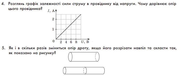 4. Розглянь графік залежностi сили струму в провіднику від напруги. Чому дорівнює опір