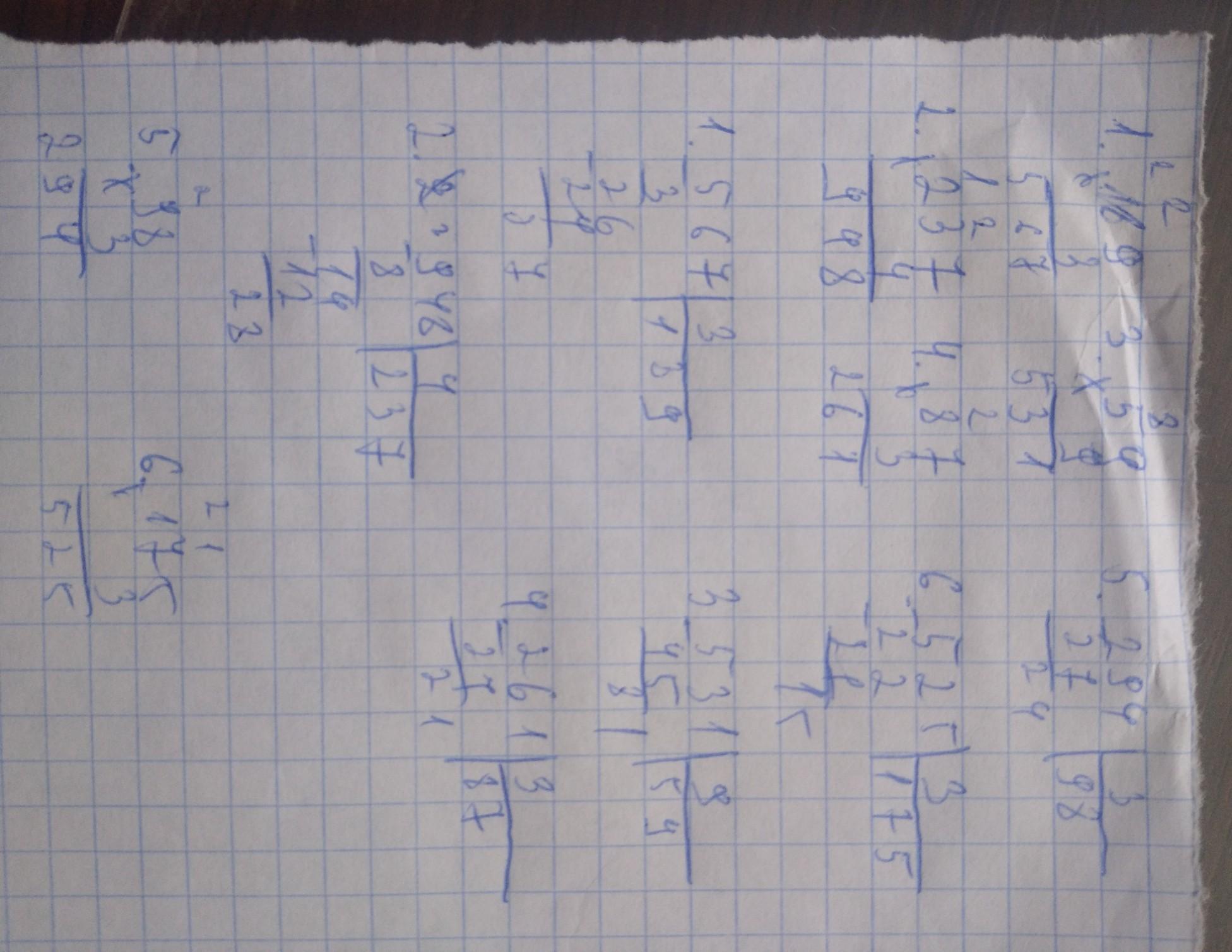 1)567 2)924 3)531 4)261 5)98 6)175