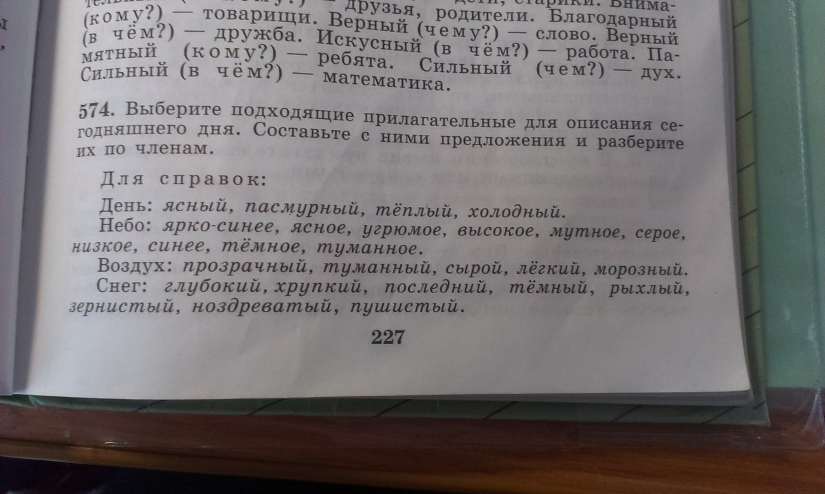 Сегодня(обстоятельство) был (сказуемое)ясный(определение), теплый (определение)день (сказуемое).