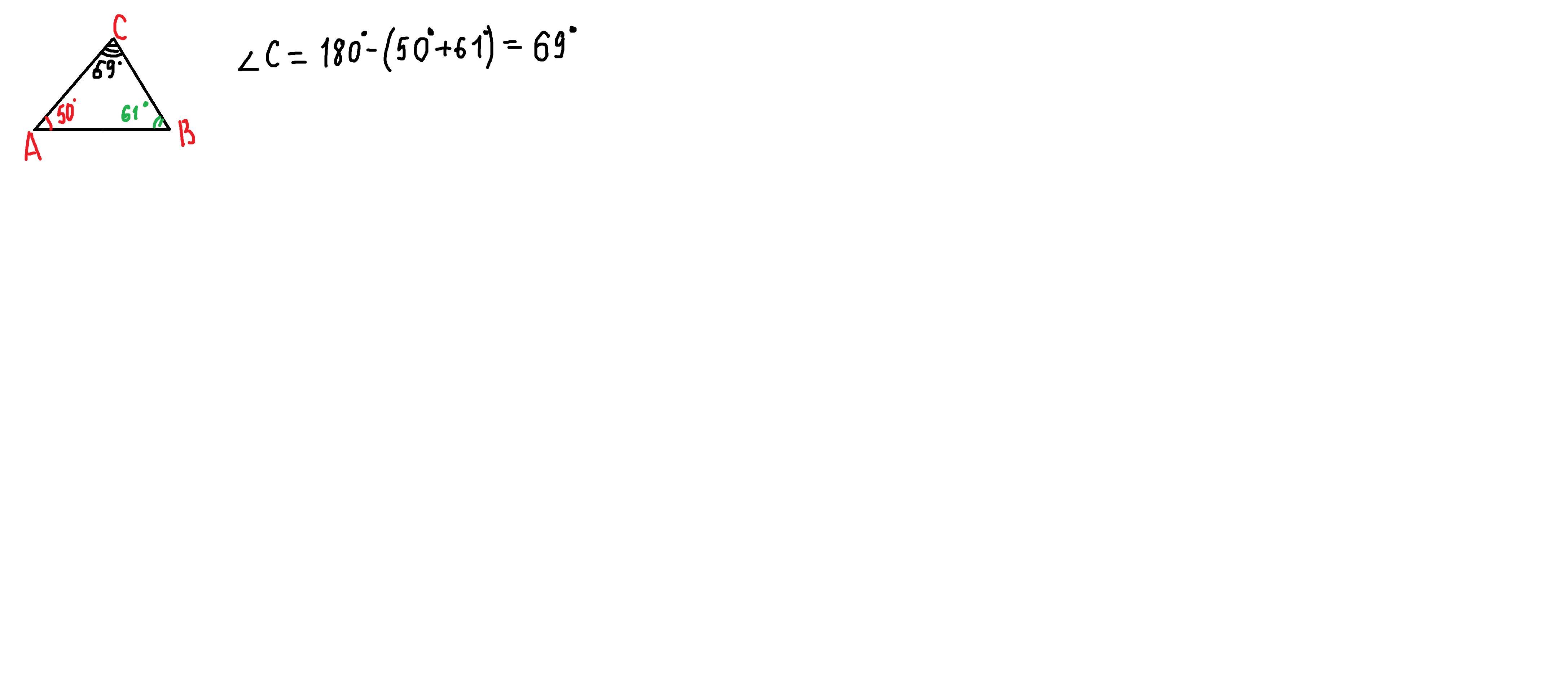 Задание 2. В треугольнике ABC ZA = 50º, <B = 61°.