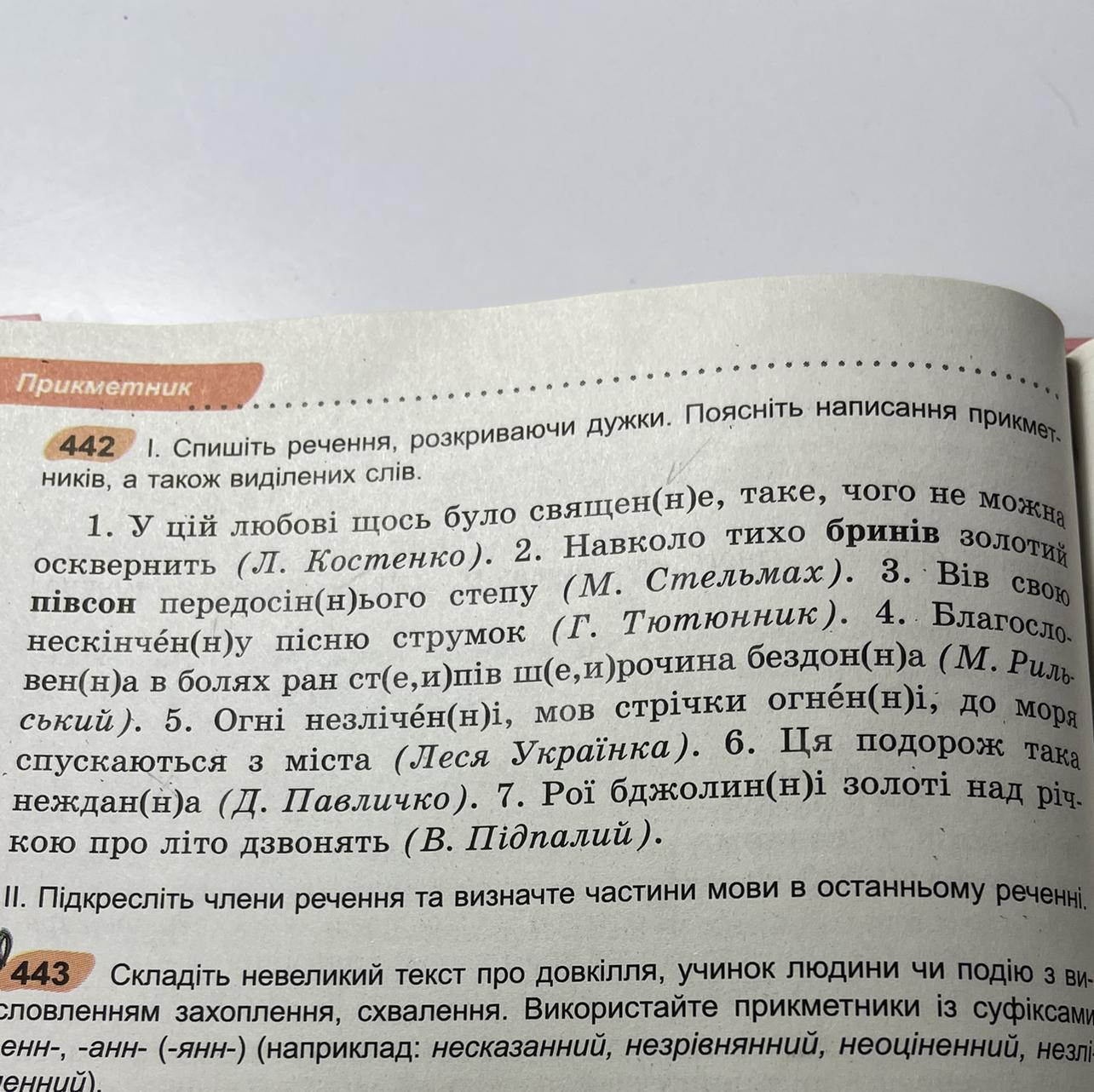 1 священне,2. передосіннього,3. нескінченну, 4. благословенна, степів, широчина, бездонна, 5. незліченні, огненні, 6. неждана, 7. бджолині