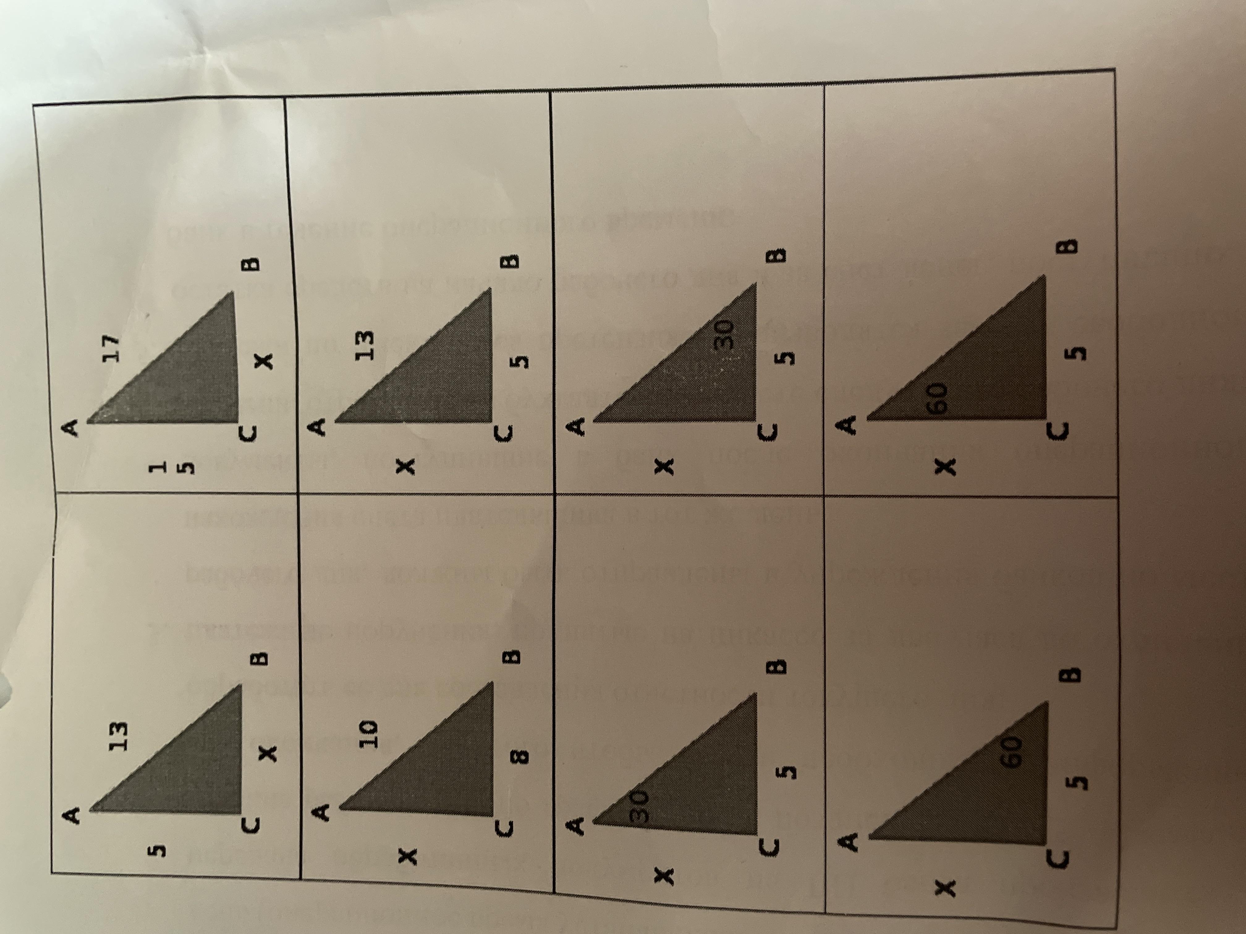 в первом рисунке слева ты находишь катет по теореме Пифагора То есть 5² - 13² - это будет 144 и √144 - это 12