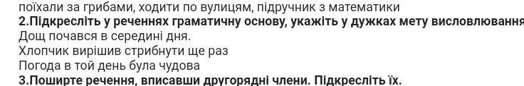 Підкресліть у реченях граматичну основу, укажіть у дужках мету висловлювання(фото 2 завдання)