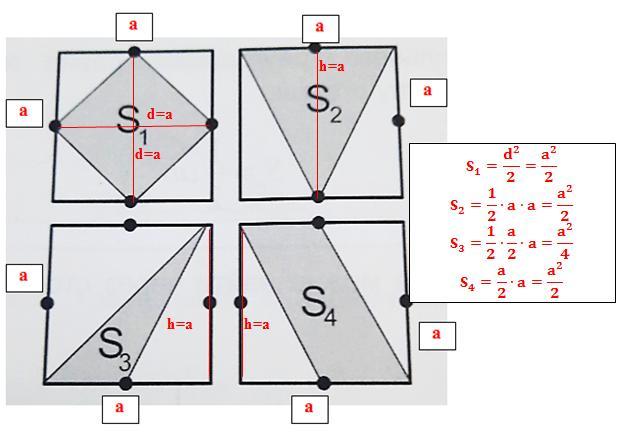 3) Площадь S₃ треугольника равна половине произведения основания и высоты h = a.
