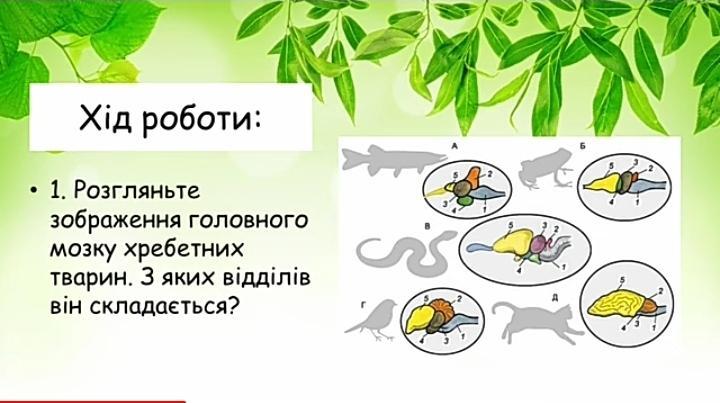 Д.У головному мозку ссавців розрізняють такі відділи: передній мозок, проміжний мозок, середній мозок, мозочок і довгастий мозок. Передній мозок хребетних має парні потовщення - півкулі.