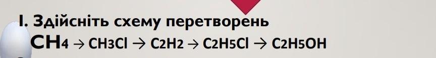 Метан (СН4) → Метилхлорид (СН3СІ) → Ацетилен (C2H2) → Етиленхлорид (C2H5Cl) → Етанол (C2H5OH)