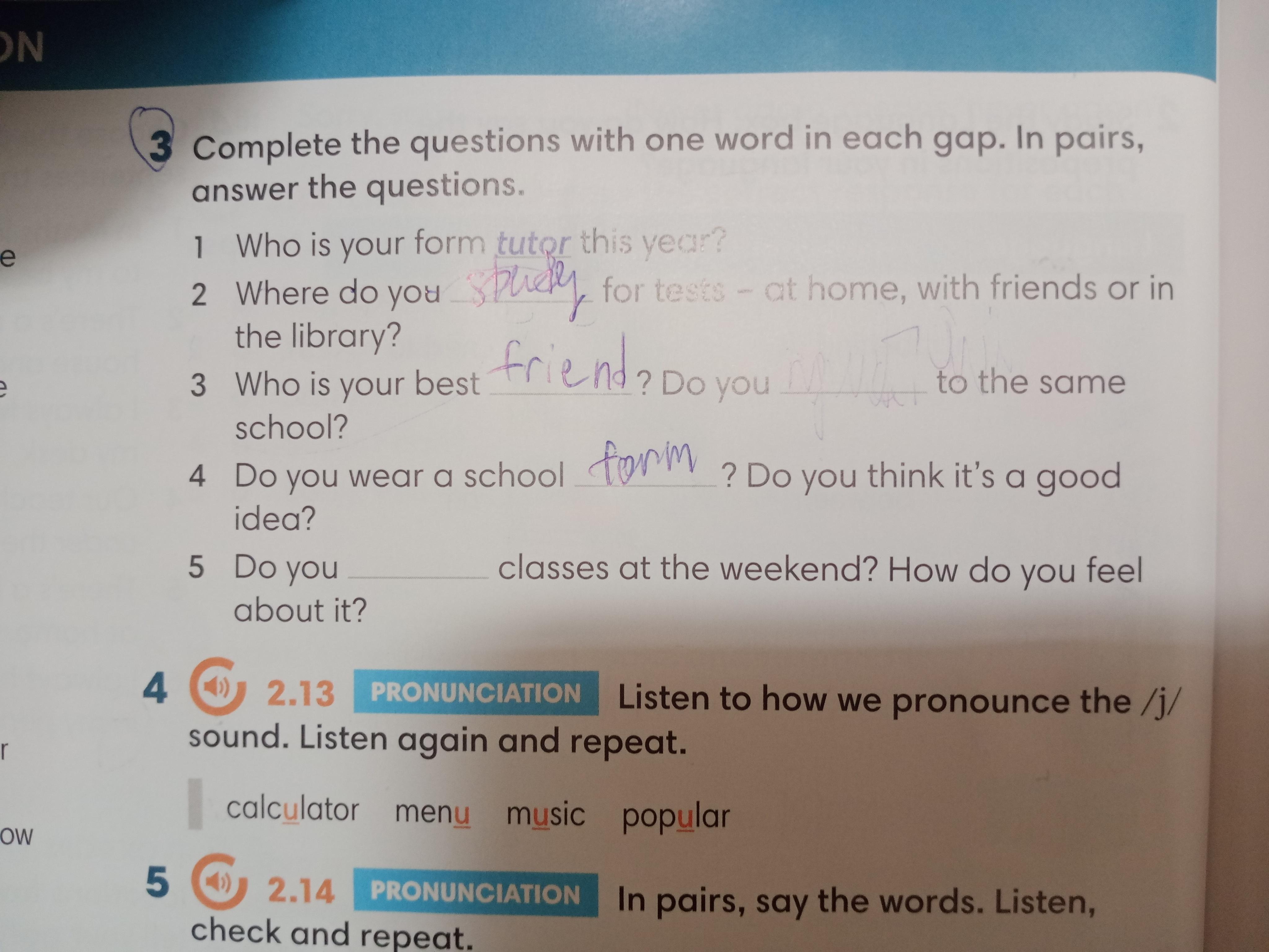 3 answer - my best friend is *ім'я кращого друга*, yes we go to the same school.