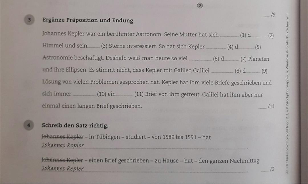 Johannes Kepler hat von 1589 bis 1591 in Tübingen studiert. Johannes Kepler hat zu Hause einen Brief geschrieben und den ganzen Nachmittag damit verbracht.