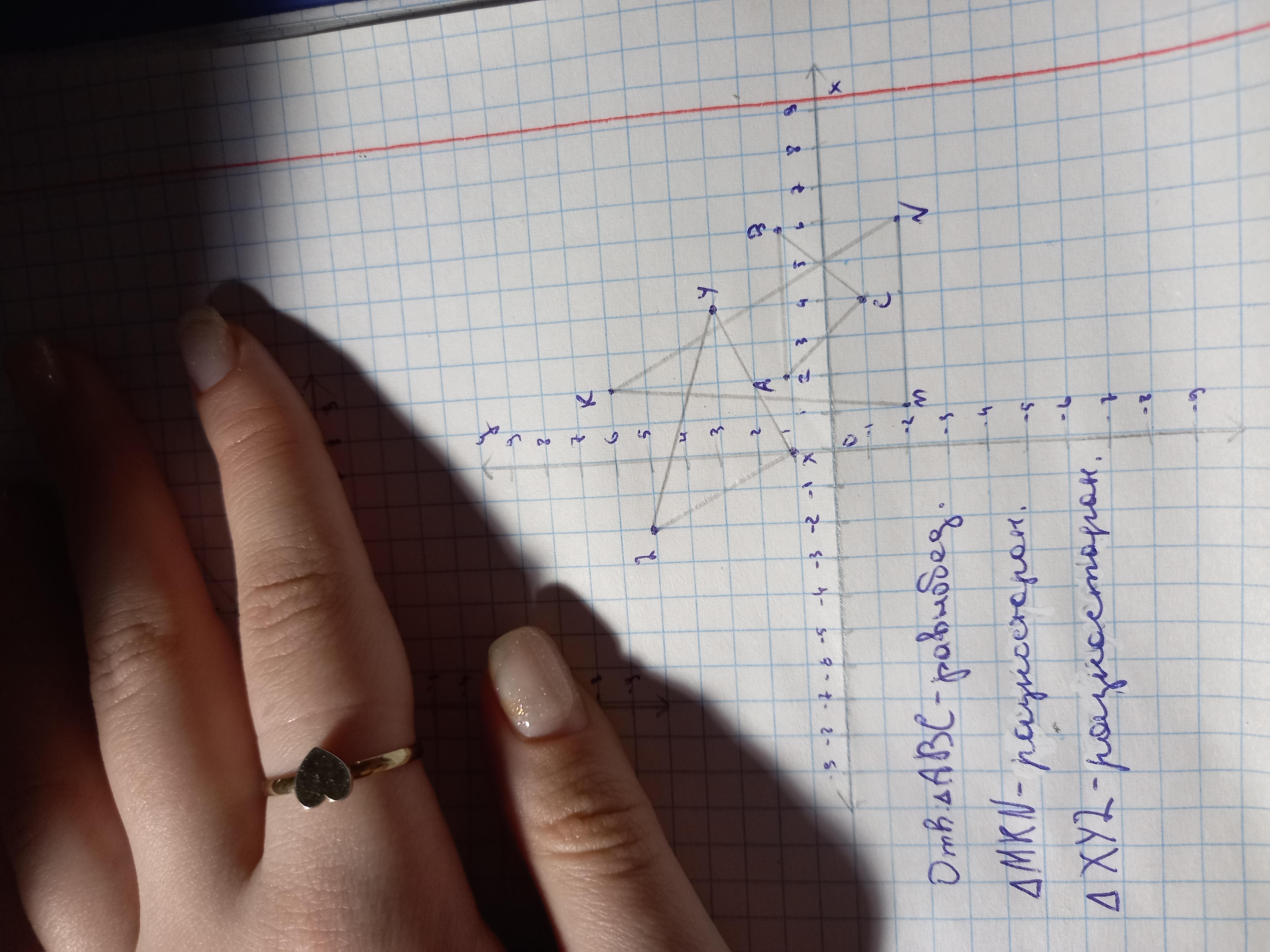 Постройте треугольники с вершинами в точках: a) A(2; 1) B(6; 1) и C(- 1; 4) b) M(1; - 2) N(6; - 2) и K(2; 6) c) X(1; 0) Y(4; 3) и Z(5; - 2) По полученным сторонам определите вид треугольников.