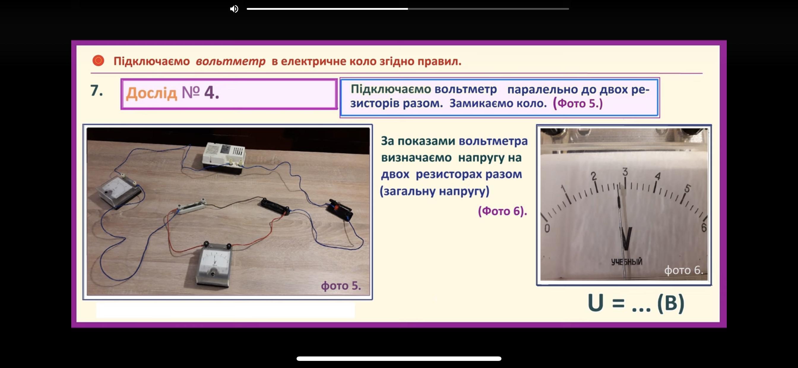 Тут все просто, тобі дали фото, де є показання вольтметра, треба визначити ціну поділки шкали (думаю не треба пояснювати як це робить), а потім подивитися на яку поділку саме вказує стрілка. В цьому випадку ціна поділки дорівнює 200мВ або 0,2 Вольта, тобто з кожною поділкою показники зростає на 0,2 Вольта, на фото видно, що стрілка знаходиться на межі між 3 та 4 поділкою якщо відлік починати від поділки 2 Вольта, тоді виходить, що вольтметр показує 2,7 Вольт (2+0,7), точність нажаль низька, може бути похибка +-0,05 Вольт, але не критично.