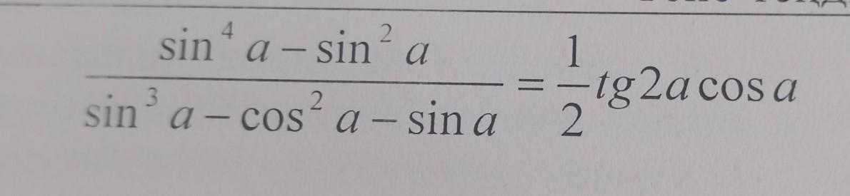 (sin⁴ a - sin² a) / (sin³ a - cos² a - sin a) = (1/2) tg 2a cos a