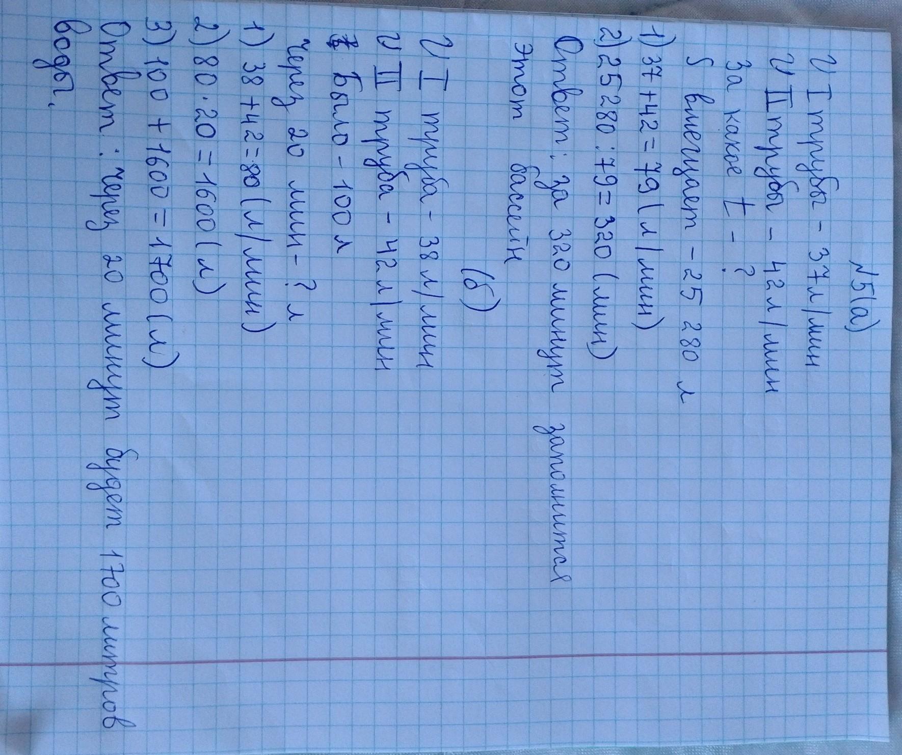 3 5 Реши задачи. а) в зоопарке для белых медведей построили бассейны. В бас- сейн из двух труб вливается вода. Из одной трубы со скоростью 37 л/мин, из другой - 42 л/мин. За какое время заполнится этот бассейн, если он вмещает 25 280 л воды? 6) в бассейн из одной трубы вливается вода со скоростью 38 л/мин, из другой - выливается со скоростью 42 л/мин. Сколь- ко воды будет в бассейне через 20 минут, если на момент открытия кранов там было 100 л воды?