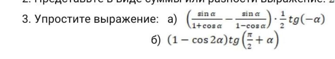 (sina-cosa)(sina+cosa) / sinacosa : (sina - cosa) =