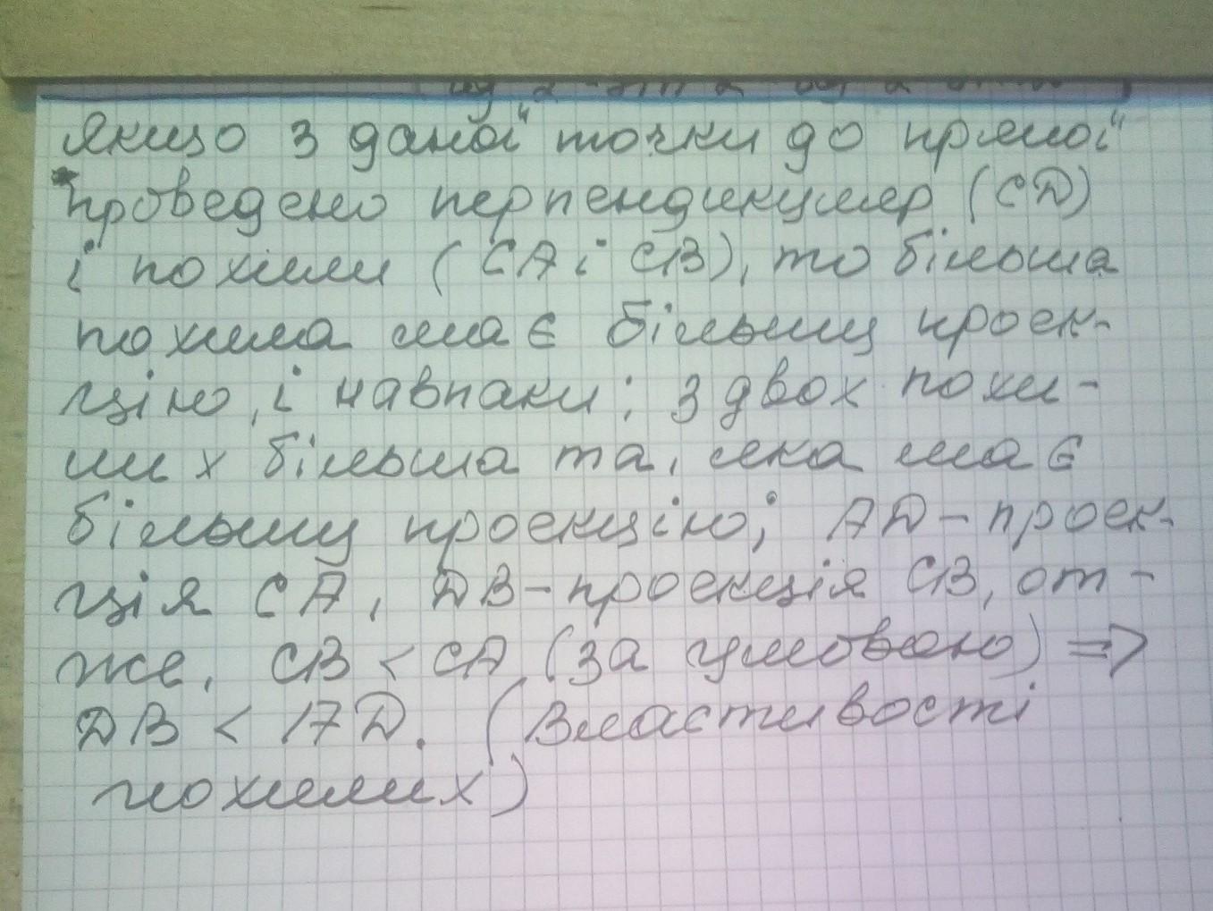 Будь ласка допоможіть!!!!!!!!!!!!!!!!!!!!!!!!!!!!!!!!!. З точки С до прямої проведено дві похилі CB i CA, причому CB<СА