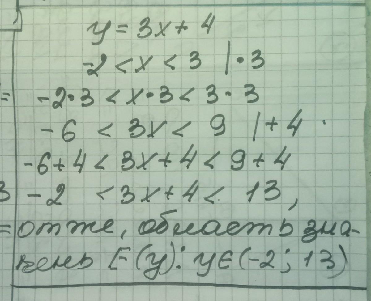 функцію у=-3х+4 задано для -2<х<3. Знайдіть область значень цієї функції