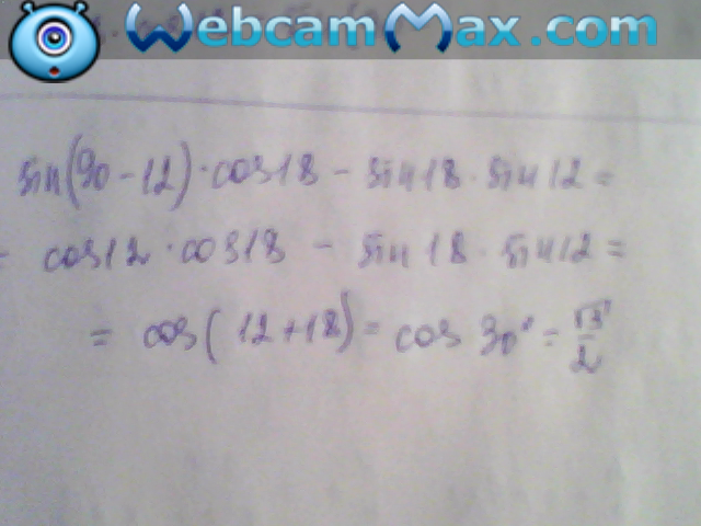 sin78cos18-sin18sin12=sin(90-12)cos18-sin18sin12=cos12cos18-sin18sin12=cos(18+12)=cos30=√3/2