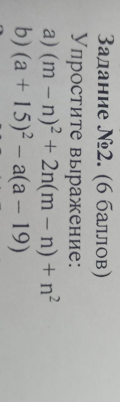 a) (m-n) ² + 2n(m-n) + n ² = m ²-2mn+n ²+2mn-2n ²+n ² = m ² + 0 = m²