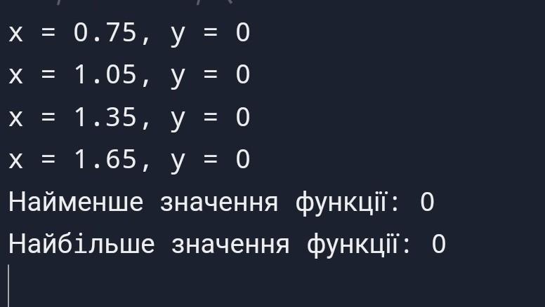cout << "Найбiльше значення функції: " << ymax << endl;