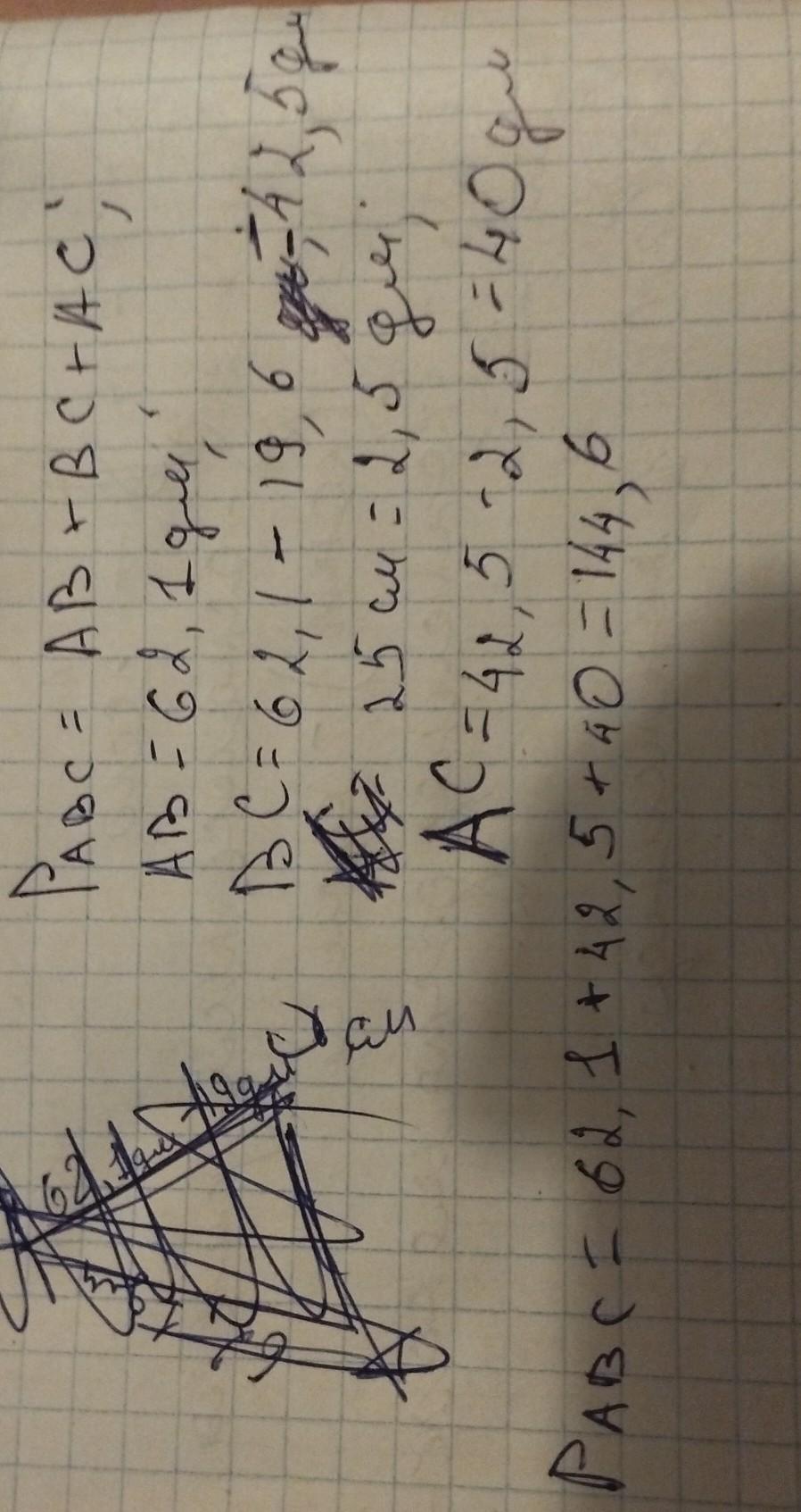 5. Сторона АВ трикутника ABC дорівнює 62,1 дм, що на 19 дм 6 см більше за довжину