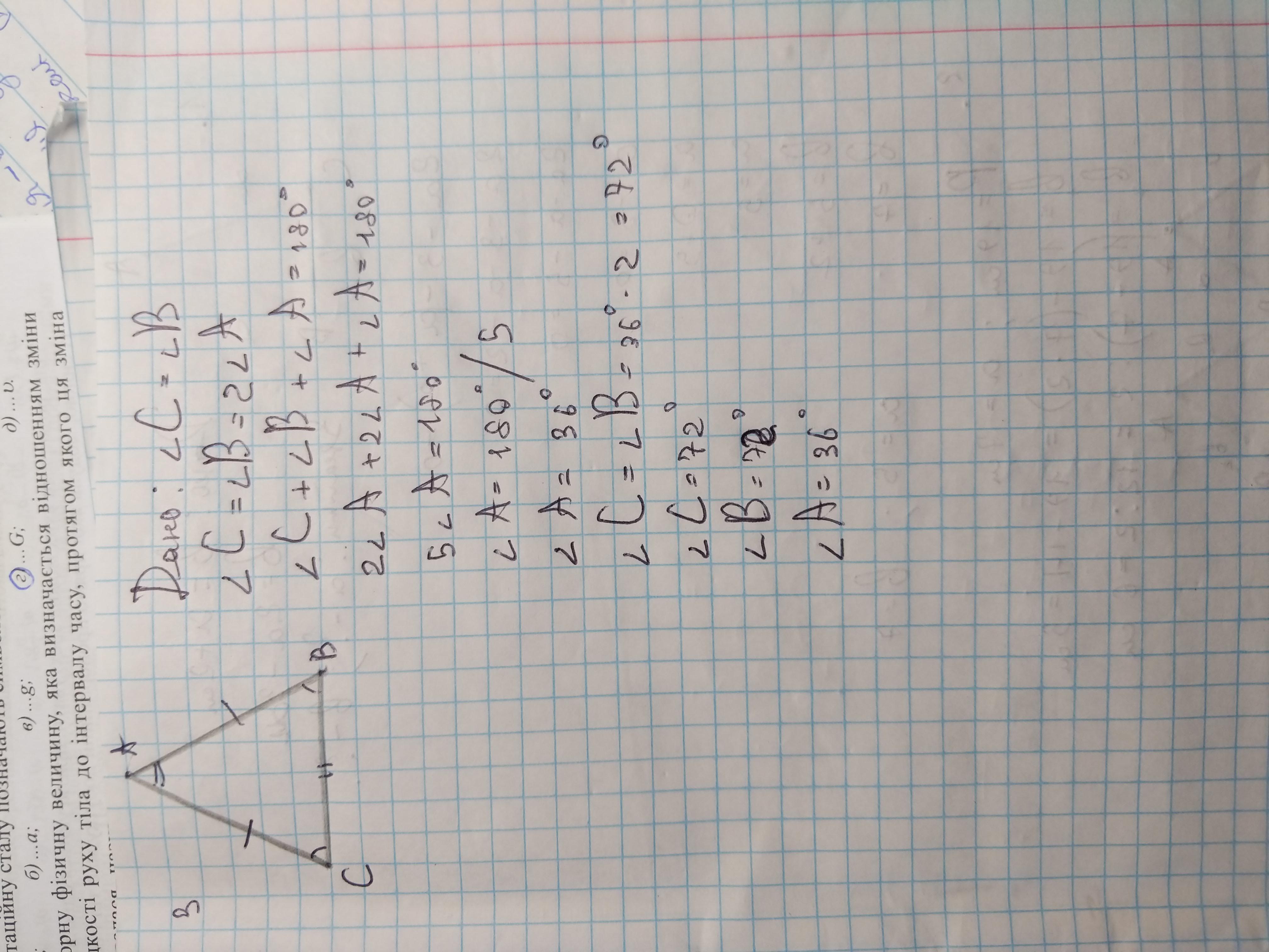 3. Визначте кути рівнобедреного трикутника, якщо кут при його основі удвічі більший за кут при вершині, яка протилежна основі.