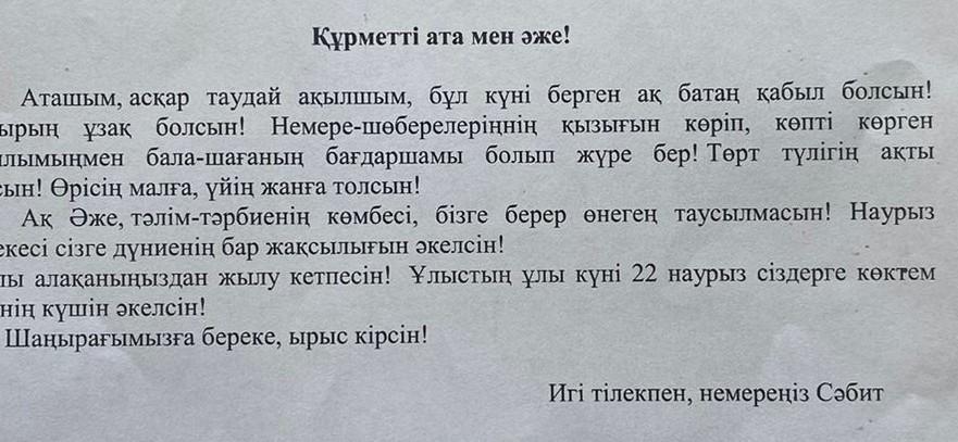 Ата мен әже әрбір балаға қымбат, ата мен әженің бөлек орындары бар. Әжеміз ауылда құрт, майларын сақтап немерелеріне береді, ертегі оқып береді, атамыз көп нәрсе үйретеді. Аталарымыз бен әжелеріміз аман болсын.